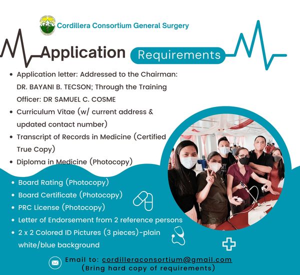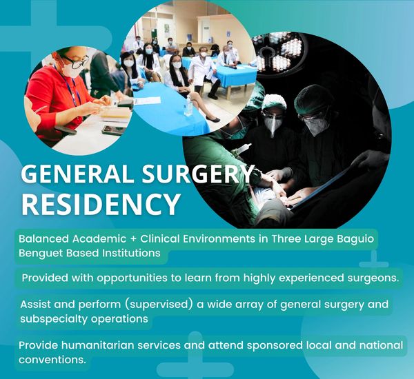 The Cordillera Consortium General Surgery Residency Training Program is a PSGS Accredited Training Program by the year 2021, committed to provide an excellent quality of healthcare, to conduct continuous professional education activities, and to produce ethical clinical research.